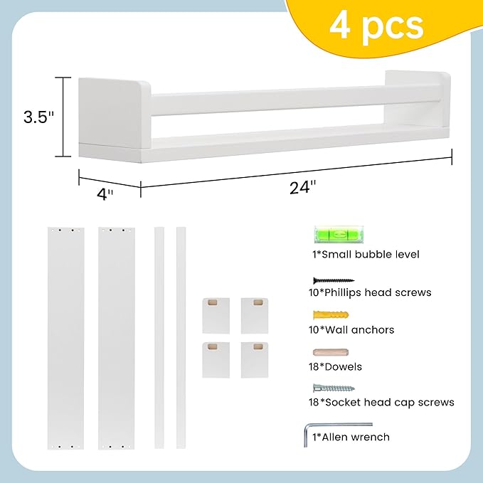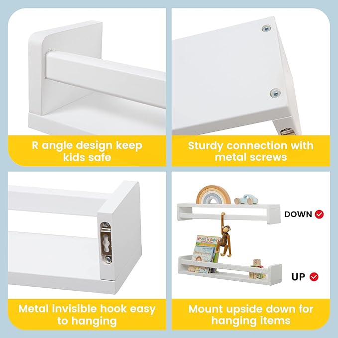 - Durable & High-Quality: Made of solid pine wood, these floating shelves are built to last. They'll provide a stylish and practical storage solution for years to come, making them an excellent addition to nursery decor and any room throughout your home