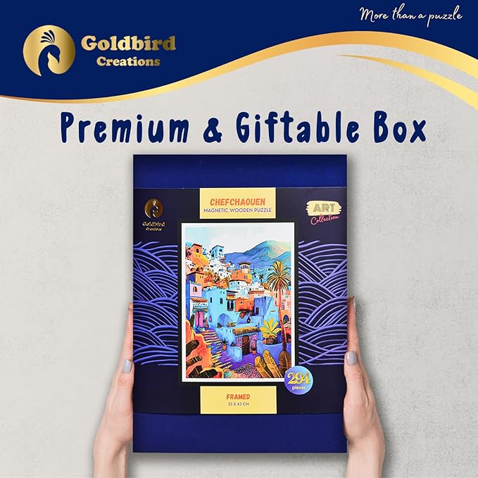 Magnetic Wooden Puzzles with Frame for Adults - Framed Wooden Jigsaw Puzzle - Rompe Cabezas para Adultos - Landscape Wall Art Decor - Original Christmas & Birthday Gift (Chefchaouen)