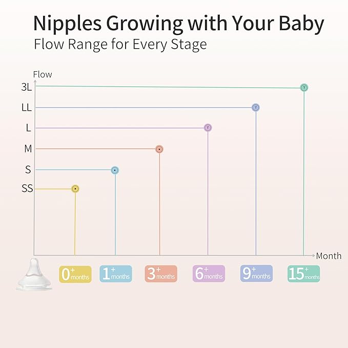 SOFT AND FLEXIBLE SILICONE NIPPLE: For seamless switch between breast and bottle. It’s super soft and flexible to allow for natural and smooth tongue movement. Latch-on Line: The new design with latching curve of the nipple is guiding for baby’s appropriate latch, so as to achieve effective adsorption.