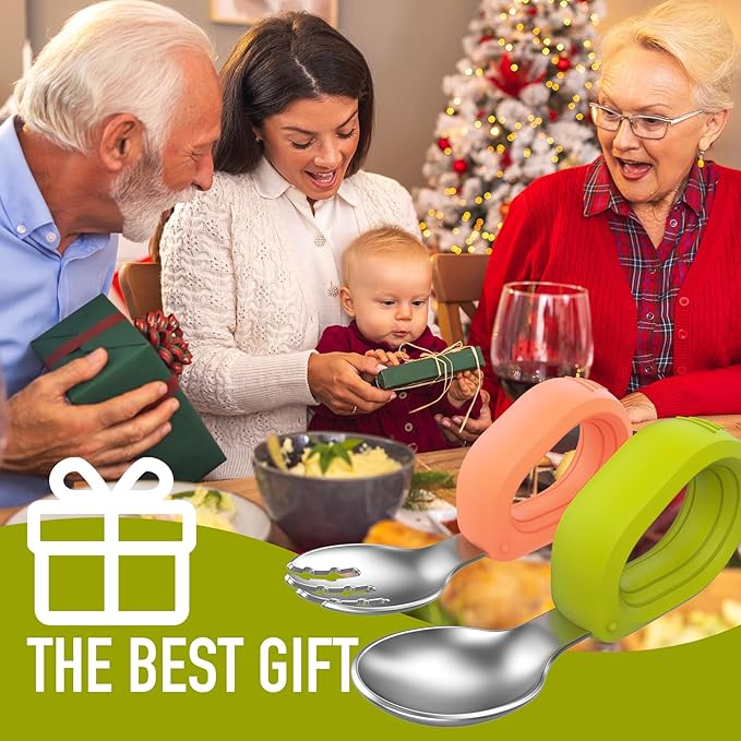 - [Perfect Combination] A set of toddler tableware contains 1 orange fork and 1 green spoon, with an easy-to-carry case.
