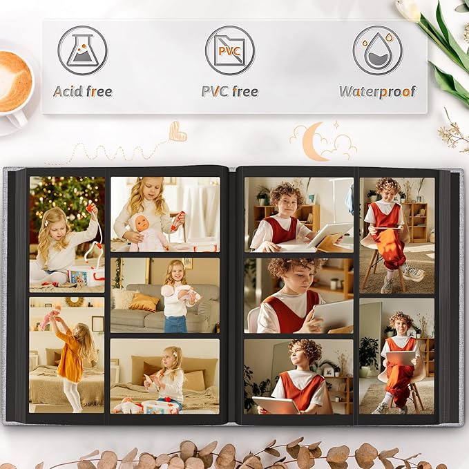 • PERFECT SIZE & CAPACITY: This 4x6 photo album measures 12.2 x 13.2 x 3 inches. It can hold 1000 4x6 inch photos horizontally and vertically, each pages holds 5 photos