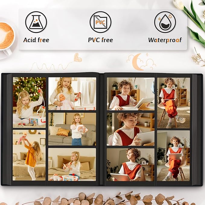 • PERFECT SIZE & CAPACITY: This 4x6 photo album measures 12.2 x 13.2 x 2 inches. It can hold 600 4x6 inch photos horizontally and vertically, each pages holds 5 photos
