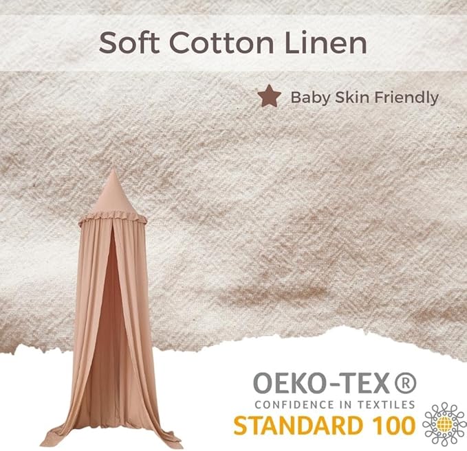 Wonder Space Kids Bed Canopy with Ruffles, Pastel Neutral Color for Boys & Girls, Frilled Cotton Tent Nursery Room Baby Crib Hanging Curtain Mosquito Netting Children Reading Nook Decoration (Nougat)