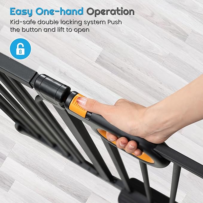 - 【Easy to Use】Adults can easily open the baby gate for stairs with one hand, it is easy to open and close. Perfect for stairways, doorways, or hallways, creating a safe growth environment.