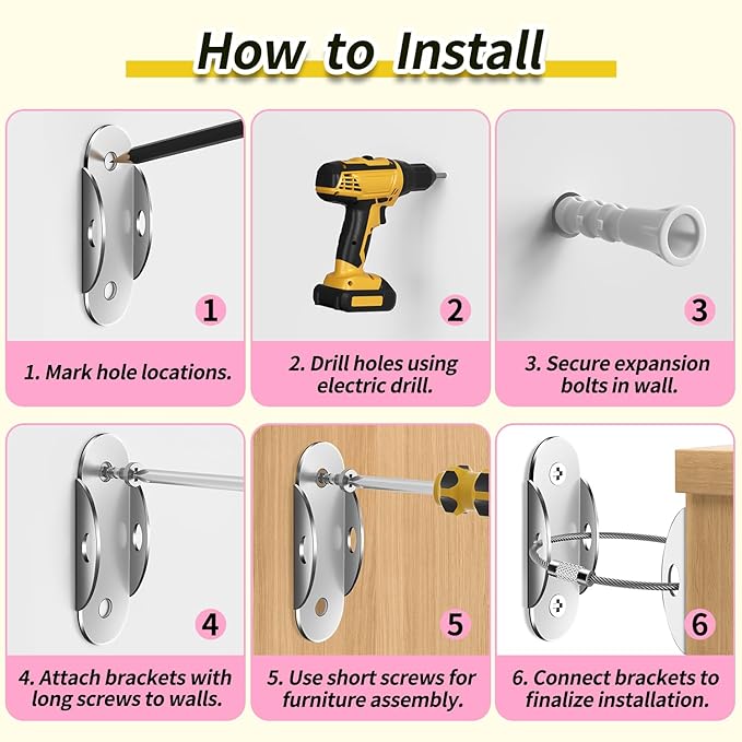 - Premium Material: Crafted from high-quality stainless steel, our baby-proof furniture anchors offer exceptional corrosion resistance and long-lasting defense against rust. Resilient against fire and heat, these anchors surpass plastic alternatives in durability, making them the ultimate guardian for your baby's safety.
