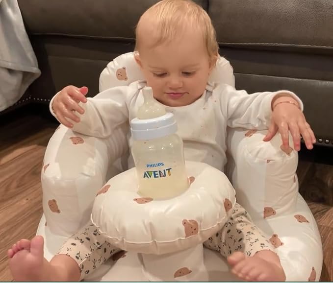 - 【2024 Upgraded Edition with Integrated Tray】 Our newly enhanced inflatable baby chair, now featuring a built-in tray for unparalleled convenience. This tray offers a perfect spot to securely hold your baby's bottle or feeding bowl, ensuring they are always within arm's reach during meals or snack times. Enjoy more delightful feeding moments with our upgraded design.