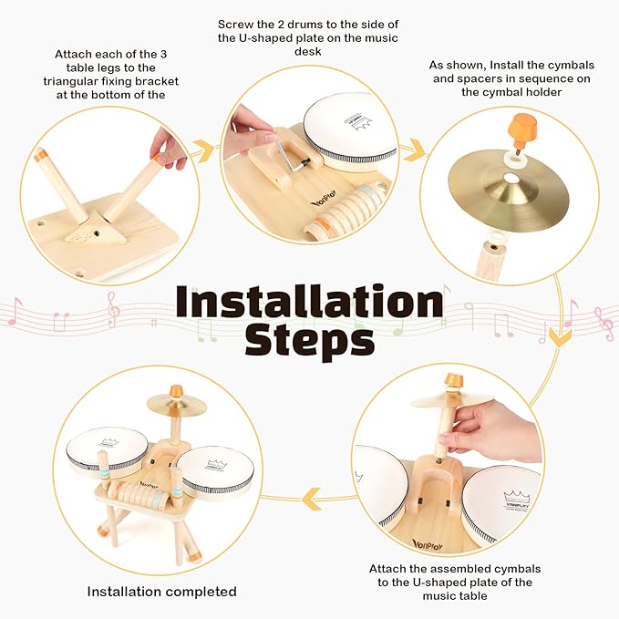 - Great Musical Toys: Our baby musical toys for montessori toddlers and kids drum set for toddlers are great for developing rhythm and musical skills. These drum set will fit right in with all your Montessori toys and these musical instruments for kids ages 3-5 will help your kids create the most magical sound.