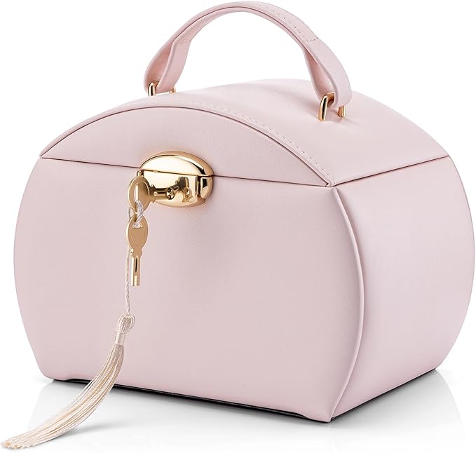 Vlando Musical Jewelry Box with Spinning Ballerina, Lockable Girls’ Jewelry Organizer for Necklaces Rings and Hair Accessories, Gift for Girls and Kids, Barely Pink