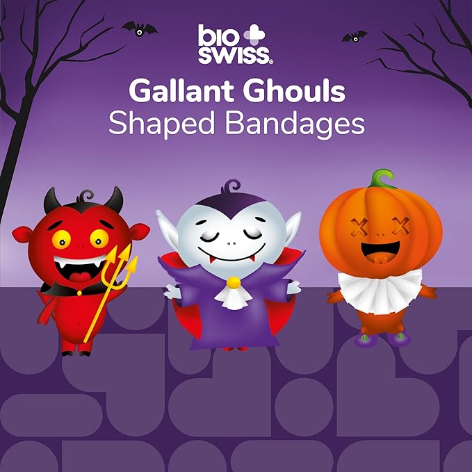 BioSwiss Bandages, Halloween Ghouls Shaped Self Adhesive Bandage, Latex Free Sterile Wound Care, Fun First Aid Kit Supplies for Kids and Adults, 50 Count