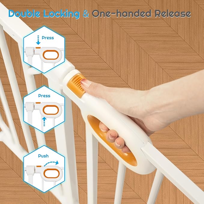 - 【Safe Baby Gate】Our extra wide baby gate can effectively restrict your baby or pets from entering specific areas, ensuring their safety, which provides you and your family with safety and reassurance.