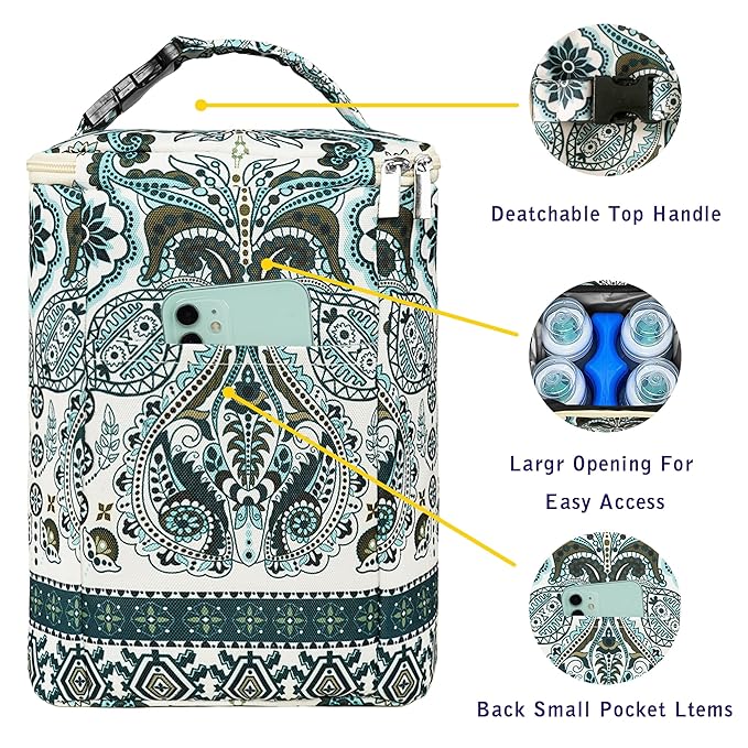 - ICE PACK INCLUDED: The breast milk storage bag comes with a four-compartment bottle ice pack. The blue ice pack bottle needs to be filled with water and can be reused many times. If the ice pack is removed, the bag can hold up to 6 bottles. Please refer to the precautions for use.