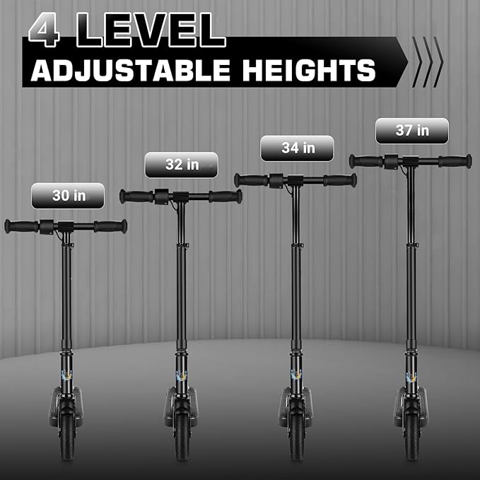 - 【🚀Accompany Kids to Grow Up】The Caroma electric scooter for kids is designed with 4 adjustable heights handlebar, the height can be adjusted to 28/31/34/37 inches, suitable for kids from 6-12 (even 14 ages), and is best for boys and girls up to 132 lbs. Caroma is your child’s best partner as they grow up, making it the perfect scooter for kids ages 6-12.