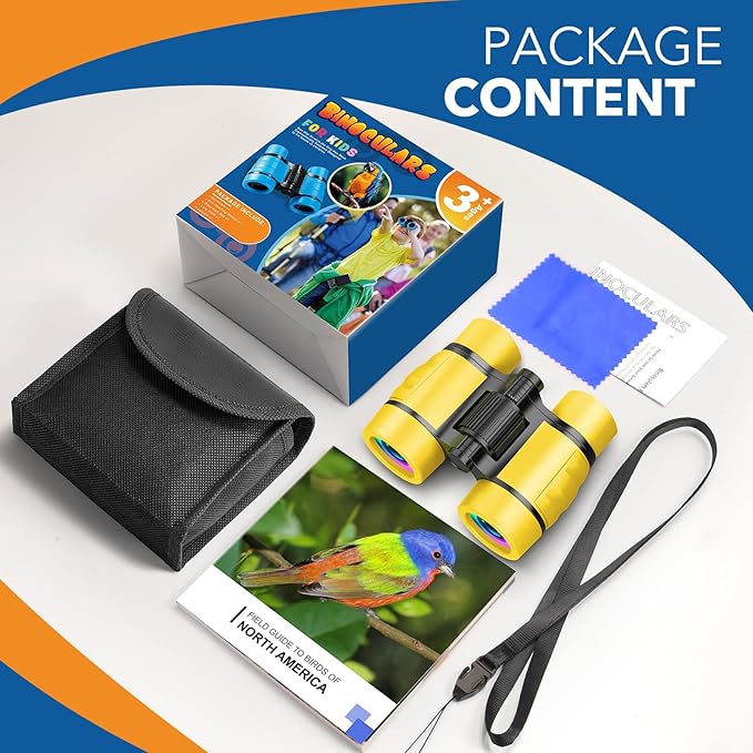 - Adventure Accessories: This fun binoculars is a perfect tool for your kid's outdoor adventure! Package Includs 1x 4x30 Binoculars, 1x Bird Watching Manual, 1x Carrying Canvas Bag, 1x Neck Strap, 1x Lens Wiping Cloth