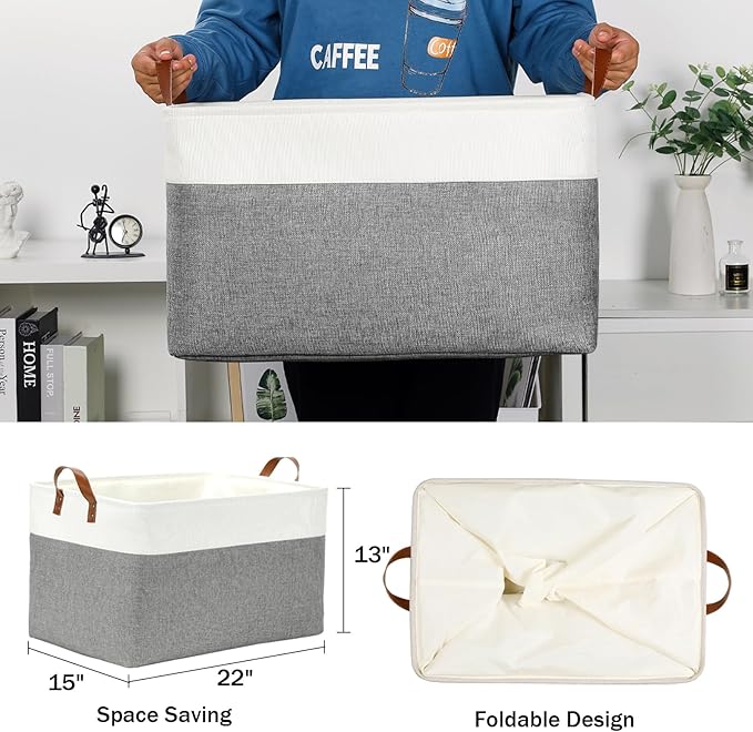 DULLEMELO Extra Large Storage Baskets for Organizing 22"x15"x13" Foldable Fabric Storage Baskets Organizer Bins with Handles Large Storage Basket for Shelves Closet Toys Books (White&Grey)