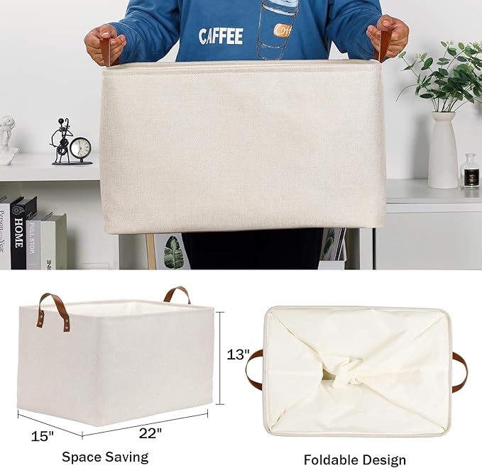 【Unique Design & Modern & Decorative】Set of 2 large storage baskets, dimensions(each): 22(L) x 15(W) x 13(H) inches. Fabric baskets for organizing bring you organizing convenience and a sweet home. Great for socks, underwear, books, magazines, toys, baby clothes, pet products, wipes, towels, decorations, office supplies, DVDs, and gifts. The Large Fabric baskets with neutral colors can match a lot of home styles - keeping your home nice and tidy.