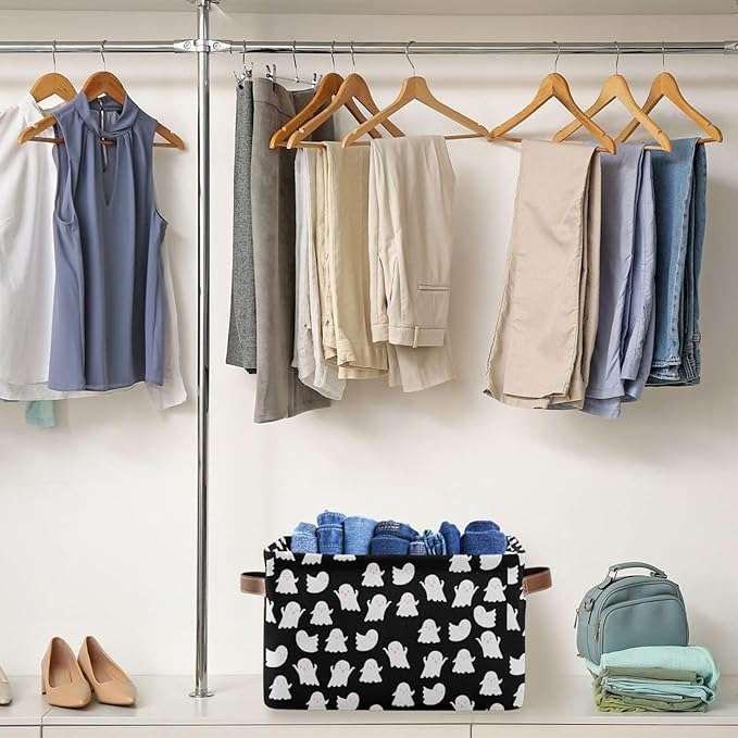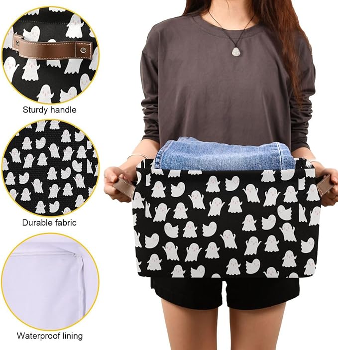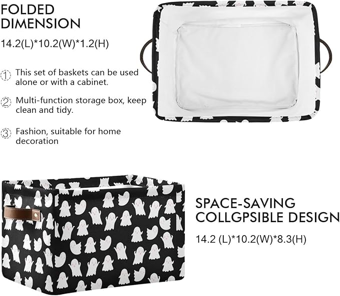 Storage Basket Bin Halloween Ghosts Organizer Basket Collapsible Shelf Basket Cube with handle for Nursery Bedroom Bathroom (white 24)