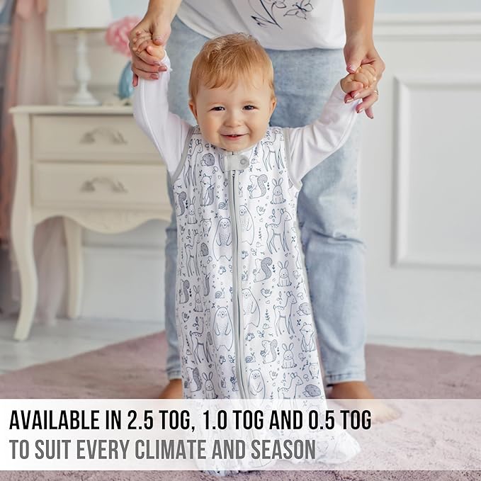 • 【MADE WITH ORGANIC COTTON】— The Mama Cheetah 2.5 TOG Baby Sleeping Bag is made of a premium 100% organic cotton shell with ultra soft polyester fill for extra warmth, which is perfect for cooler months. The organic cotton interlock minimizes overheating and keeps your baby warm and comfortable. Please be mindful of the TOG rating when ordering the right sleeping bag for your baby.