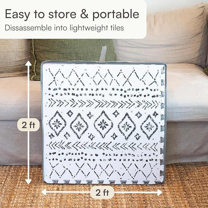 Lillefolk Baby Play Mat for Floor – 6x8ft Boho | Soft Non Toxic Premium EVA Foam Tiles for Tummy Time, Crawling & Playroom – Waterproof Interlocking Floor Mat for Babies & Toddlers (12 Tiles)