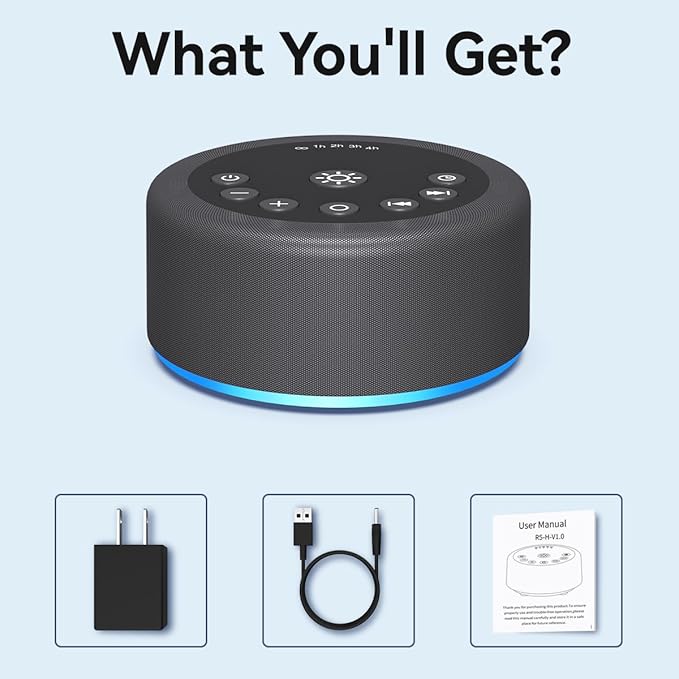 - 【💙Elegant design & Guaranteed quality】The design of white noise machine is very elegant, the unique rounded edges and soft gray appearance add elegance and refinement to white noise machine, the rounded edge does not worry about the baby bump to protect the safety of the baby. We offer a one-year worry-free after-sales guarantee to ensure the safety and quality of our product. If you encounter any quality issues, Please contact us in time, and we will gladly replace it with a new one for you.