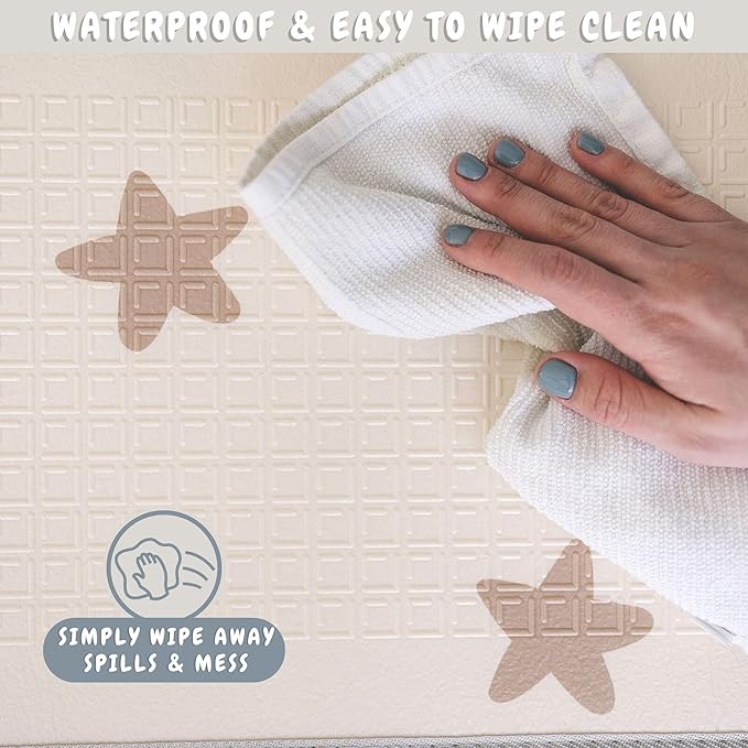 GENEROUS SIZE: Large play area gives babies and toddlers plenty of space to crawl, roll, and explore while staying cushioned on the star-patterned foam surface
