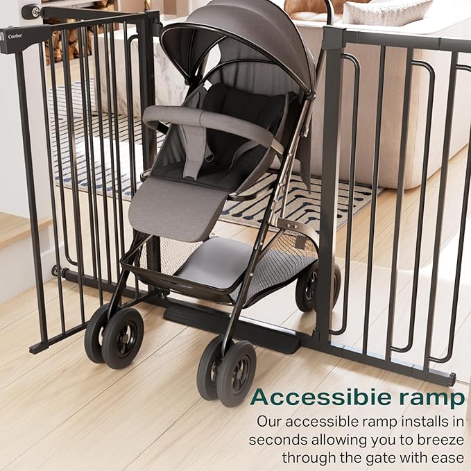 Cumbor 36" Extra Tall Baby Gate for Stairs, 29.7-57" Extra Wide Dog Gate for Doorways Hallways, Pressure Mounted Child Gate for Wide Opening, Auto Close Personal Safety for Babies and Pets, Black