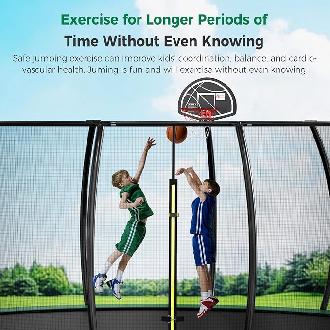 - 【The Ultimate Gift for Kids】A trampoline offers more than just fun; it's a gift of good health. It boosts the immune system, strengthens the skeletal system, helps control weight, and serves as a stress reliever. Our trampoline for kids and adults is a perfect outdoor gift