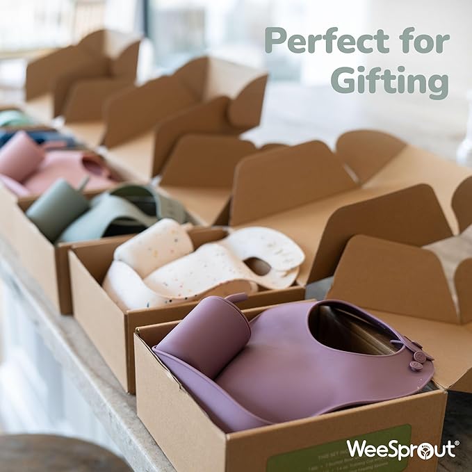WeeSprout Baby Led Weaning Bundle, Silicone Suction Bowl, Spoons, Bib & Cup, Develops Self Feeding Skills, Dishwasher Safe (Pink)