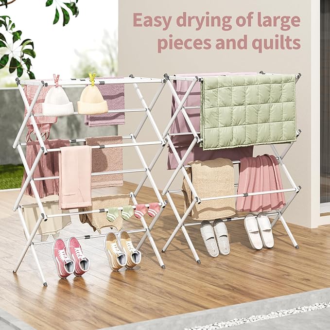 - Material: The APEXCHASER clothes drying rack is made of all metal and has a rust-resistant coating, which can endure different weathers for indoor and outdoor use, making it perfect for apartments or small living spaces.