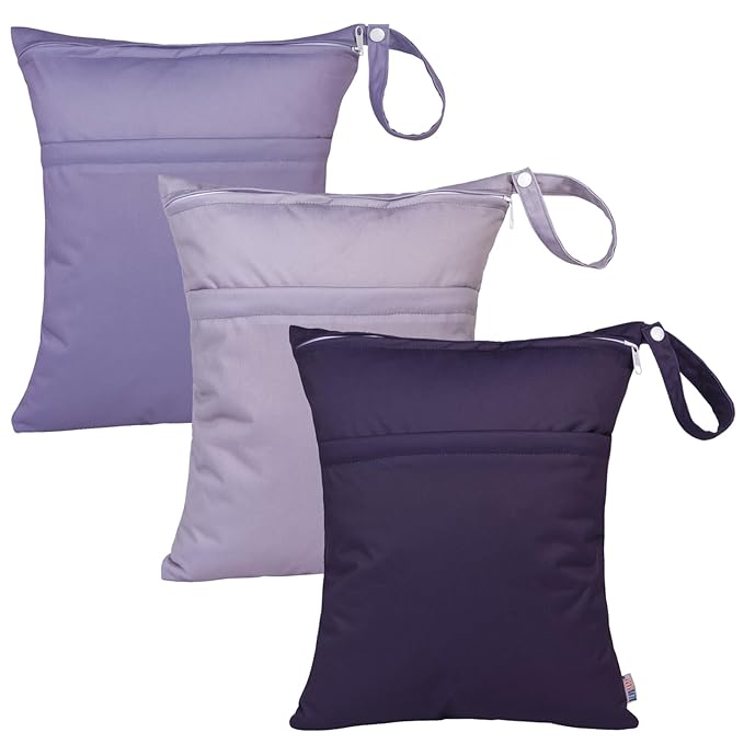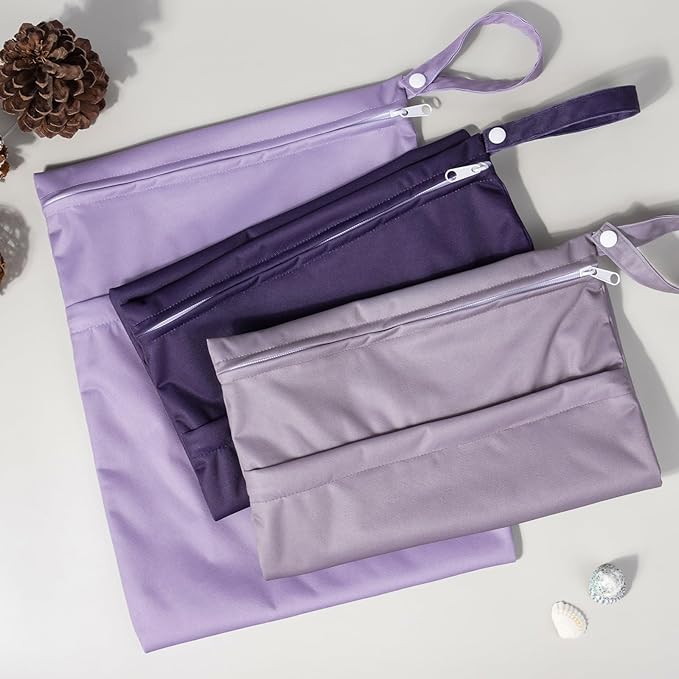 ALVABABY 3pcs Cloth Diaper Wet Dry Bags Waterproof Reusable with Two Zippered Pockets Travel Beach Pool Daycare Soiled Baby Items Yoga Gym Bag for Swimsuits or Wet Clothes 3L-ZM08