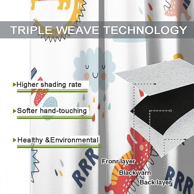 Cartoon Dinosaur Curtains for Kids Boys Girls Home Decor Colorful Cute Dino Animals Print Pattern Rod Pocket Blackout Window Drapes for Nursery Baby Bedroom Playroom W21xL63in 2 Panels