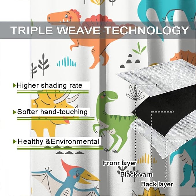 Kids Dinosaur Curtains for Boy Girl Bedroom Decor Cartoon Dino Colorful Cute Funny Animal Wildlife Printed Blackout Rod Pocket Window Drapes for Baby Nursery Playroom Living Room W31.5xL63in 2 Panels