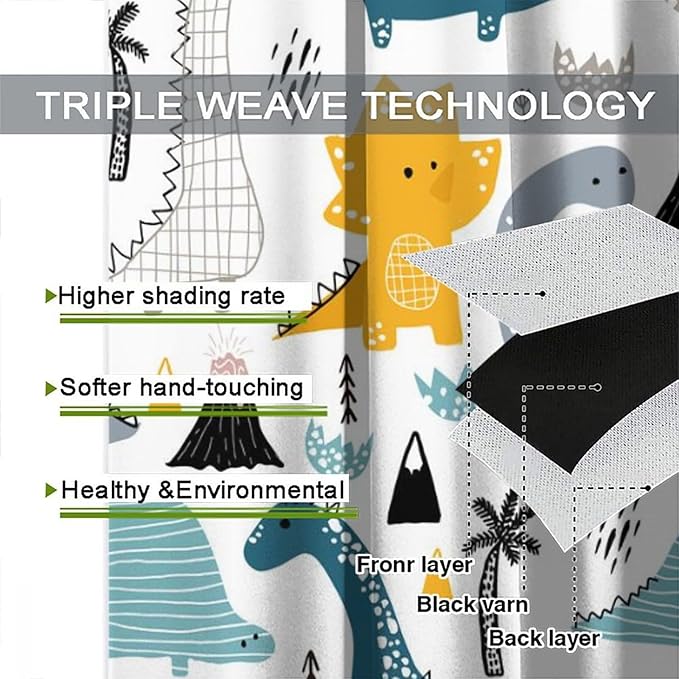 Kids Dinosaur Curtains for Boy Girl Bedroom Decor Cartoon Dino Colorful Cute Funny Wildlife Animal Printed Blackout Rod Pocket Window Drapes for Baby Nursery Playroom Living Room W31.5xL72in 2 Panels