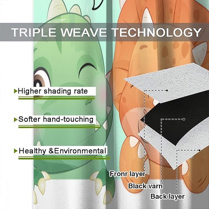 Kids Dinosaur Curtains for Boys Girls Bedroom Decor Cartoon Dino Colorful Cute Funny Animal Printed Blackout Rod Pocket Window Drapes for Baby Nursery Playroom Living Room W36xL63in 2 Panels