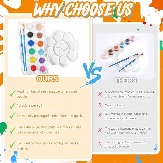 - Kids Painting Set: you will receive 12 sets of painting party favors for kids and adult beginners, which include 12 filled paint strips in 12 different colors, 24 paint brushes (12 flat brushes and 12 pointed brushes) and 12 palettes; All things fully meet the different needs of painting and coloring