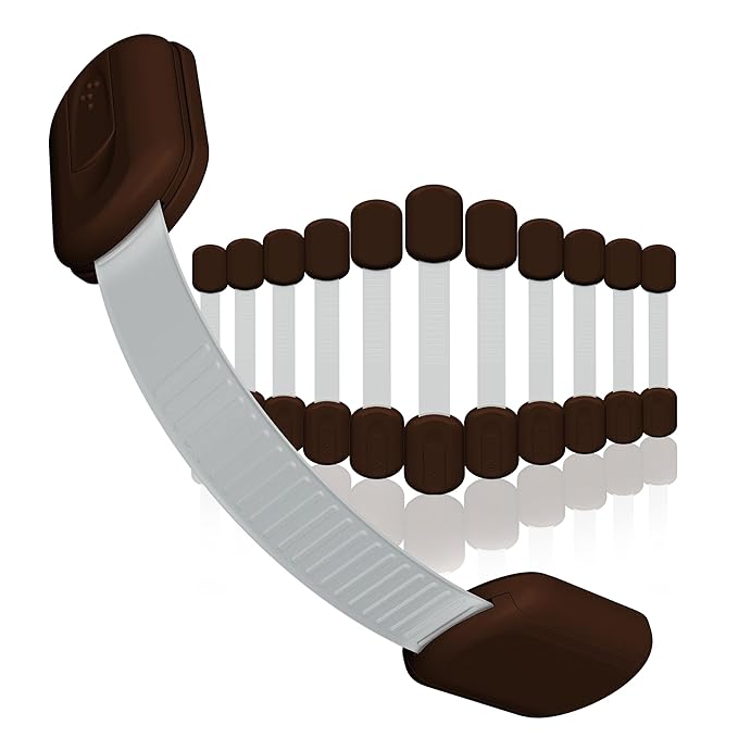 What You Get: 12 multi-purpose cabinet locks that has a high grade 3M adhesive. Flexible strap means you can bend around items from toilet seats to fridges