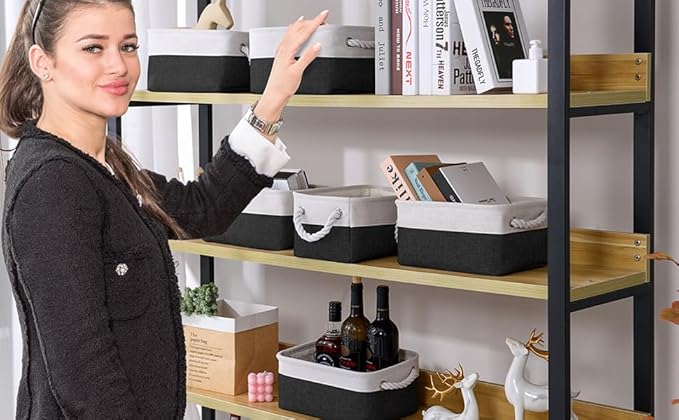TheWarmHome Storage Bins for Shelves - 12x8x5.2 inch 1 Pack Storage Baskets for Gifts Empty for Closet Organizing Dog Gift Cloth Toy Cubes Box (White & Black)