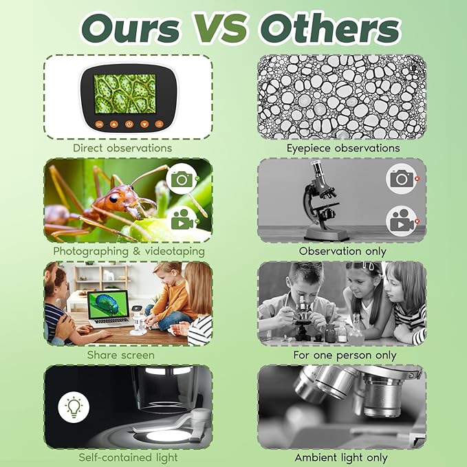 Kids Microscope for Ages 8-12, Handheld Digital Microscope D-MS1 with 2" IPS Screen - Take Pictures & Videos - Download to PC & Mac - 1000X Pocket Microscope, Used Birthday for Kids