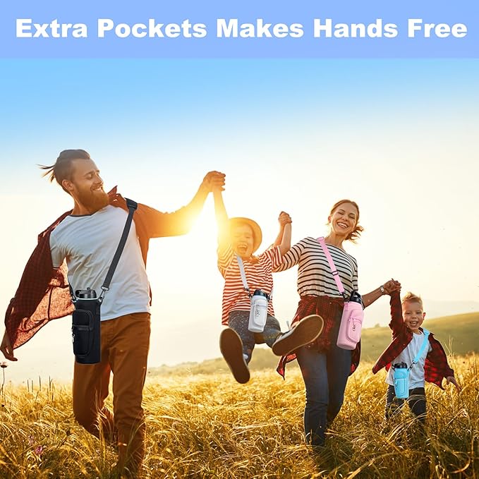 Water Bottle Holder with Strap for Hydroflask 32oz 40oz, Carrier Sling Bag with Phone Pocket Sleeve for Men Women Hiking Camping Travelling(Pink 40oz)
