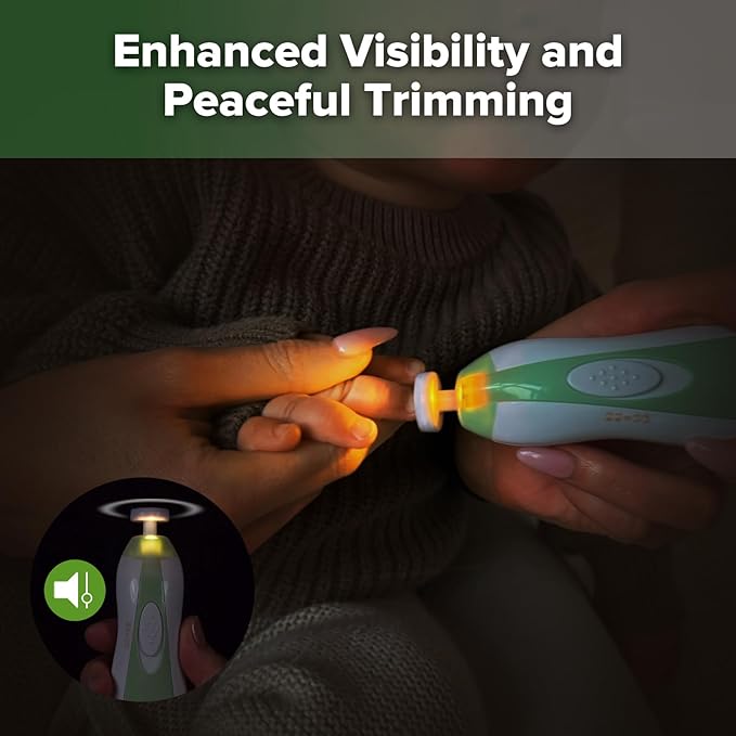 haakaa Baby Nail File Electric Baby Nail Care Set with LED Light, Baby Nail Clippers for Newborn/Infants/Adults Toenails and Fingernails, 6 Replacement Heads & Storage Case, Green