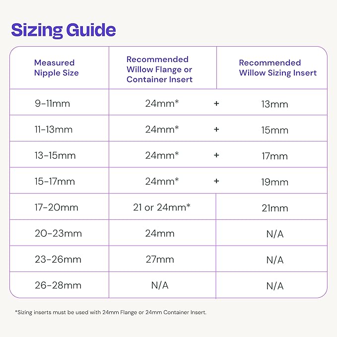 Find Your Perfect Fit: Flanges are available in 3 sizes: 21mm, 24mm, and 27mm; Reference Willow's size chart to determine your size for an optimal pumping experience