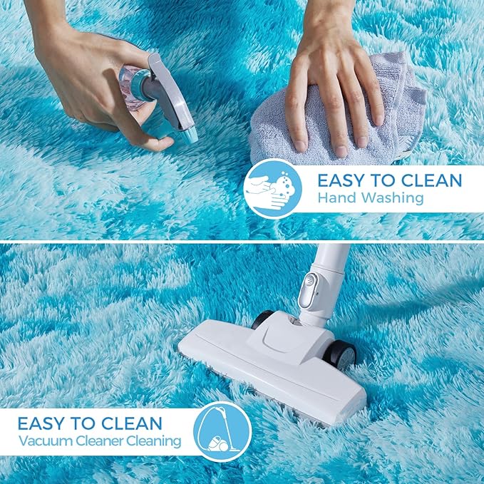 - Easy To Clean - We recommend that you can directly shake off the impurities on the surface of the shaggy carpet or use a vacuum cleaner for daily cleaning. For deep stains, you can choose to wash by hand . After cleaning, place it in a ventilated place to air dry. Note: Vacuum packed, please lay flat and will fluff up back in 2-3 days.