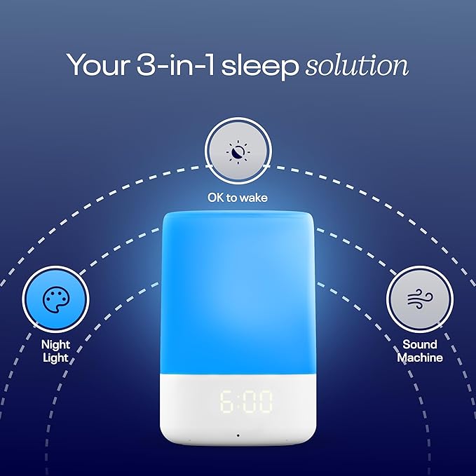 - Sound Machine, Night Light, and Ok-To-Wake: 11 soothing sounds to promote calming wind downs and happier wake ups. Select a customizable night light hue for a more soothing sleep as well as an OK to Wake color for happier mornings