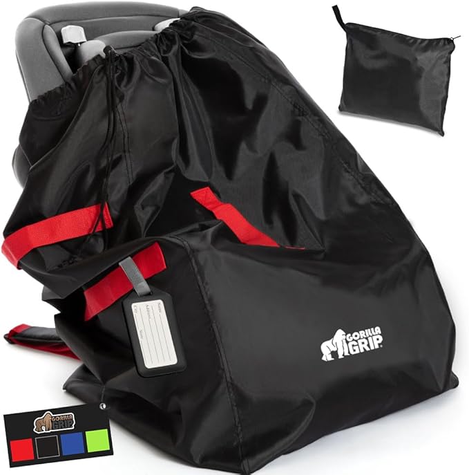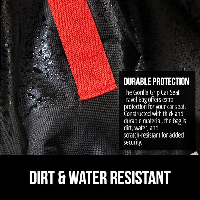 - DURABLE PROTECTION FOR YOUR CAR SEAT: a must for traveling, the Gorilla Grip Car Seat Travel Bag is designed to help protect your car seat while you travel; bag is water, tear and dirt resistant; features drawstring closure that tightly closes around the car seat, helping to protect from dirt, grime and moisture; bag is made of lightweight, yet durable material that can be machine washedβ