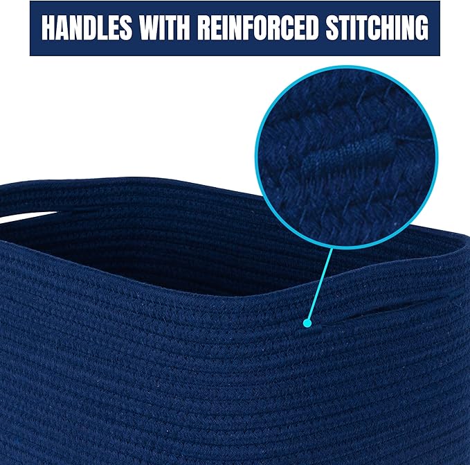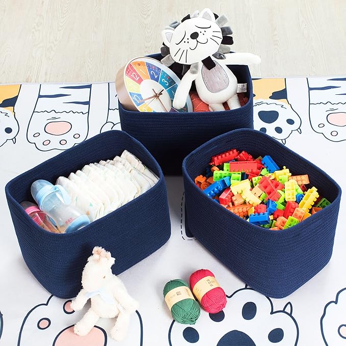 MINTWOOD Design 3-Pack Decorative Woven Storage Baskets for Shelves, Cube Bin Box for Organizing Books, Shoes, Dog Toys, Pantry Closet and Living Room Organizer, Navy Blue
