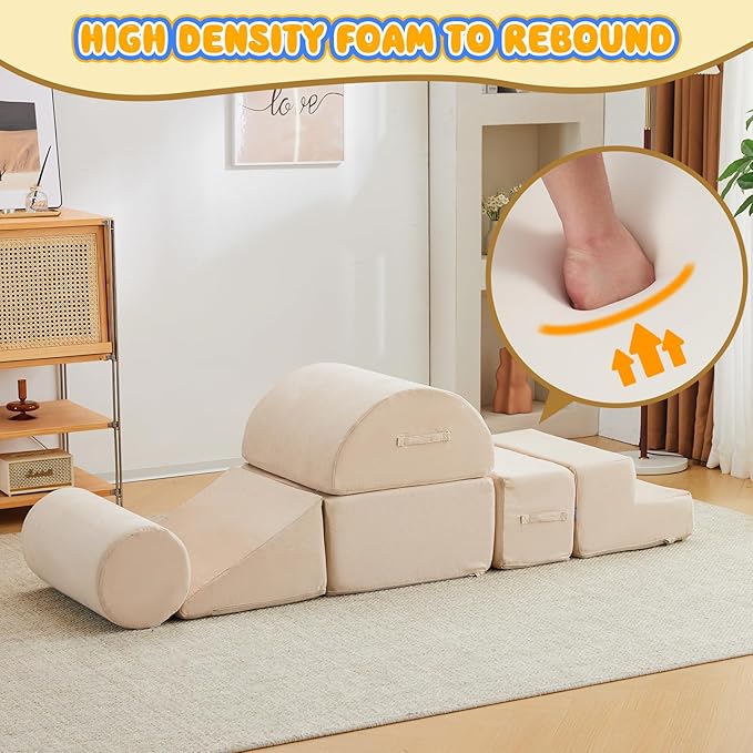• 【HIGH DENSITY FOAM SUPPORT】: 28D high density foam with excellent bounce and support for long-year use instead of usual hard cheap foam in market which can not bounce back called disposable foam.They are more suitable for kids to climb, crawl, glide and play blocks. Our parents can be more assured that their child can wildly have fun on this toddler foam climbing blocks.