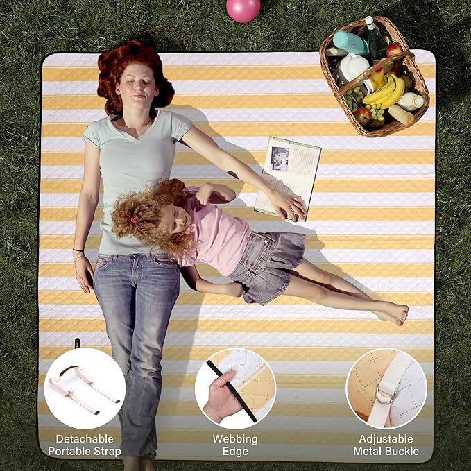 HX&OD Extra Large Picnic Outdoor Blanket, 80”x80” Waterproof Picnic Mat Foldable Camping Blanket Portable with Carry Strap for Beach Mat Outdoor Camping Party(Yellow)
