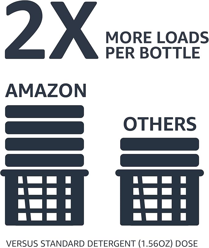 Get 2x more loads per bottle with concentrated liquid laundry detergent from Amazon Basics, an Amazon Brand (versus a standard-concentrated detergent [1.56oz dose]).
