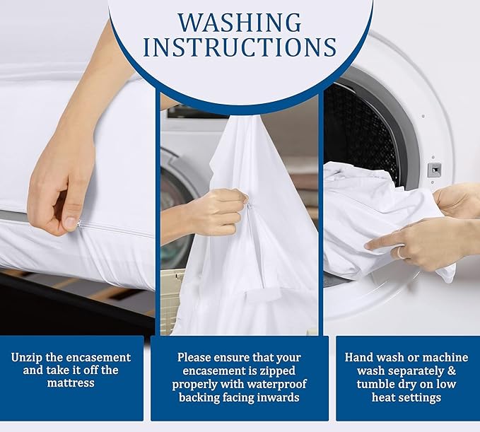 100% Waterproof Protection - Mattress encasement protects your mattress from unwelcome spills and keeps your mattress clean and safe. High quality TPU backing on all sides resist any leakage into the mattress.