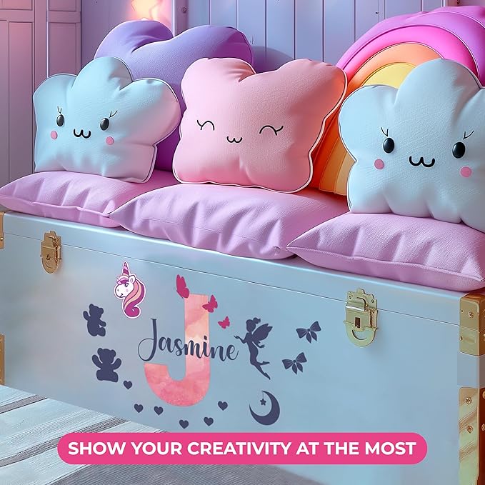 - π¨ FULLY CUSTOMIZABLE WALL DECALS FOR GIRLS BEDROOM: Transform your child's space with a fully customizable name decal. Explore a spectrum of fonts, colors, and sizes to create a wall sticker that harmonizes seamlessly with the unique aesthetic of the room. This personalized touch elevates the overall ambiance of your girls' bedroom, ensuring a decor that is both stylish and distinctive. ATTENTION: THE ELEMENTS ARE NOT INCLUDED, YOU SHOULD ADD ON CUSTOMIZATION SECTION.