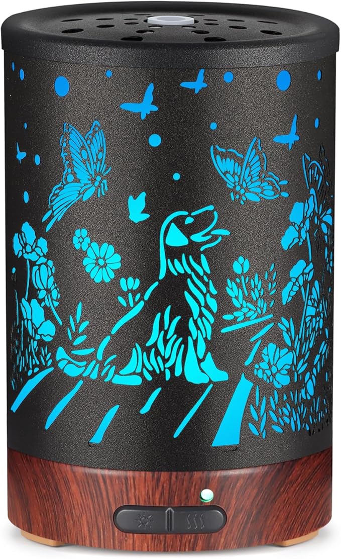Essential Oils Diffuser,Aromatherapy Diffuser,Birthday Gifts for Women Mom Grandma,Metal Cool Mist Humidifier with 7 Colors Lights Waterless Auto Off Air Diffusers (Dogs)…
